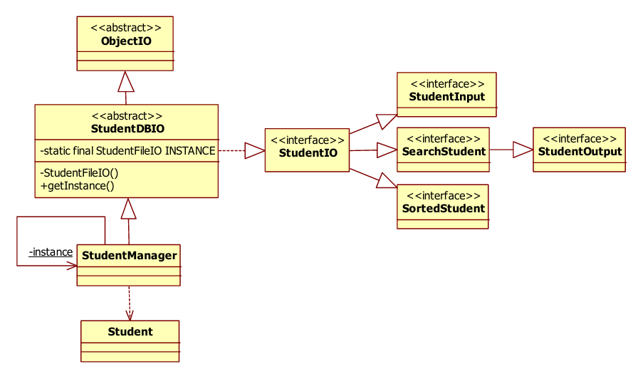 위 그림과 같은 구조를 가지는 학생정보시스템은 학생의 학번과 이름, 성적, 성적순서 등을 관리하는 시스템인데 구조 파악 하는 것이 꽤 어려웠고 만약에 UML이 없었다면 이렇게 구조를 만들어 낼 수 없을 것 같다는 생각이 들었다. 아직 어떤 부분에 있어서 분리해야 하고 상속을 받고 인터페이스로 만들어야 하는지 감이 오지 않는다. 그래서 종이에 각 클래스에 담긴 메서드와 필드를 적고 그림을 그려보았다. 각각 어떤 기능을 하고 어떻게 하는 것인지는 이해하고 있지만 전체적인 구조를 파악하는 능력을 더 키워야 할 거 같다.