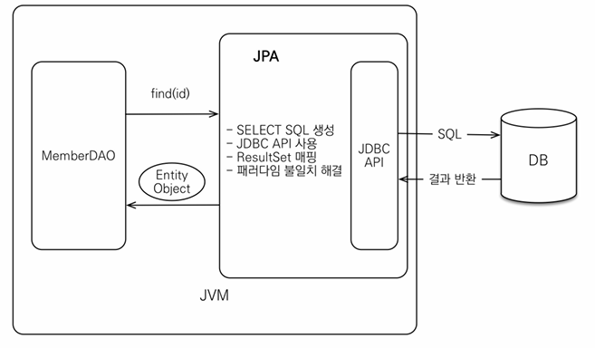 2. ORM 프레임워크가 중간에서 패러다임의 불일치를 해결하고 SQL를 생성하는 등 여러 작업을 개발자 대신 한다.