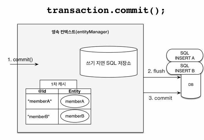 //커밋하는 순간 데이터베이스에 한꺼번에 모아서 INSERT SQL을 보낸다.