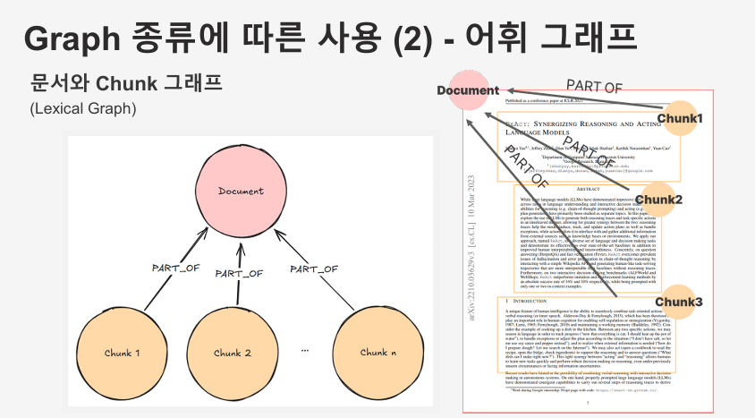 문서를 담아두는 그래프로 논문 안에 여러개의 청크로 나눔. 도큐먼트 안의 청크를 하위 노드로 설정하고 상위 노드와 관계를 설정한다.