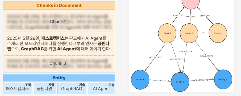 청크 안에서 엔티티를 만들어서 포함할 수 있음. 여러 청크에 걸쳐서 포함이 될 수 있고, 엔티티 간의 관계도 가질 수 있음.
